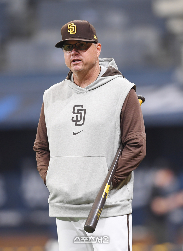 샌디에이고 파드리스의 마이크 쉴트 감독이 19일 고척스카이돔에서 ‘MLB 월드투어 서울 시리즈’ LA 다저스와 개막전을 하루 앞두고 훈련 중인 선수들을 지켜보고 있다. 2024. 3. 19. 고척 | 박진업 기자 upandup@sportsseoul.com