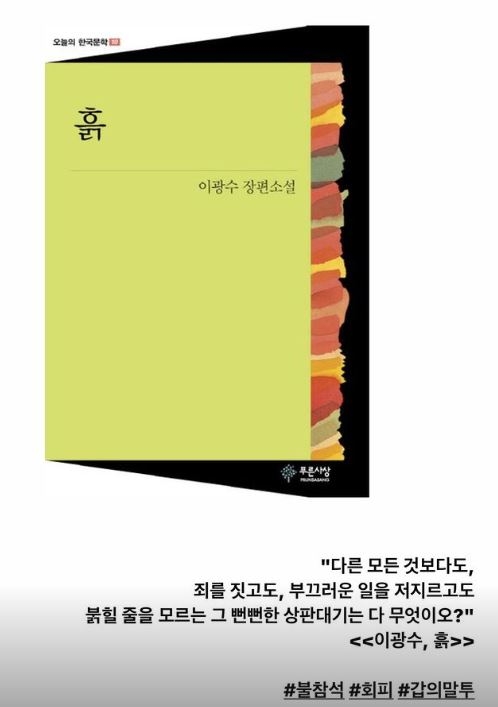 19일 이윤진은 개인 채널 스토리에 이광수의 장편소설 ‘흙’에 나오는 문구를 올렸다.