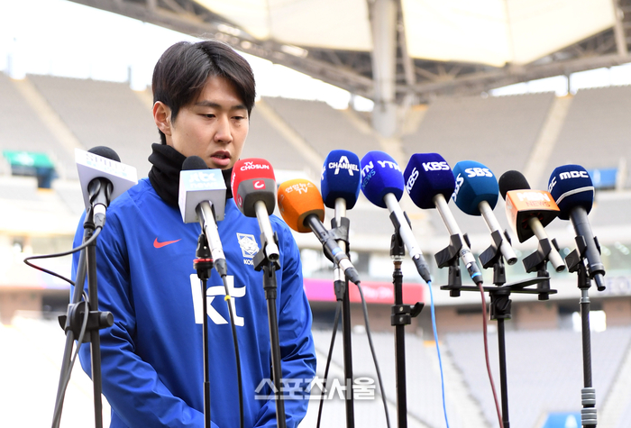 축구국가대표팀의 이강인이 20일 서울월드컵경기장에서 월드컵지역예선 태국과의 경기를 하루 앞두고 훈련을 하기 전 취재진 앞에서 아시안컵 팀 내분 논란과 관련한 심경을 밝히고 있다. 2024. 3. 20. 박진업 기자 upandup@sportsseoul.com