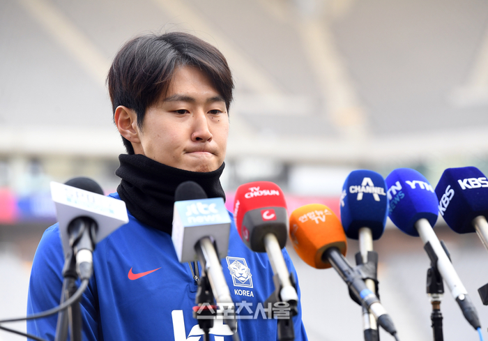 축구국가대표팀의 이강인이 20일 서울월드컵경기장에서 월드컵지역예선 태국과의 경기를 하루 앞두고 훈련을 하기 전 취재진 앞에서 아시안컵 팀 내분 논란과 관련한 심경을 밝히고 있다. 2024. 3. 20. 박진업 기자 upandup@sportsseoul.com