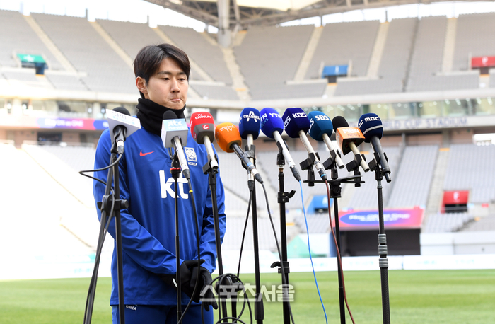 축구국가대표팀의 이강인이 20일 서울월드컵경기장에서 월드컵지역예선 태국과의 경기를 하루 앞두고 훈련을 하기 전 취재진 앞에서 아시안컵 팀 내분 논란과 관련한 심경을 밝히고 있다. 2024. 3. 20. 박진업 기자 upandup@sportsseoul.com
