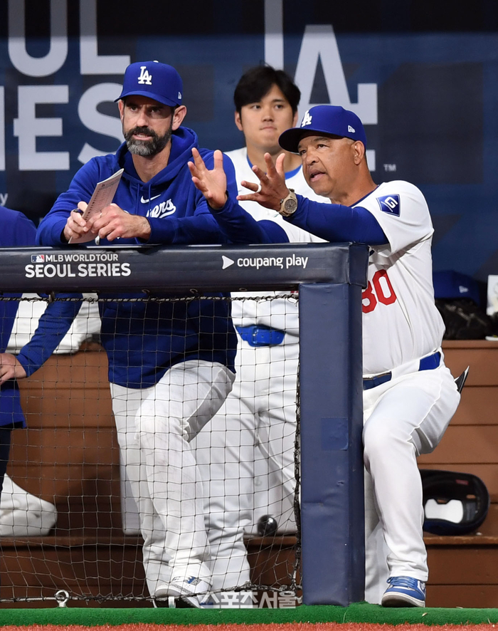 LA 다저스 로버츠 감독이 21일 고척 스카이돔에서 열린 MLB 서울시리즈 샌디에이고 파드리스와 경기 1회초 경기를 지켜보고 있다. 2024. 3. 21. 고척 | 최승섭기자 thunder@sportsseoul.com