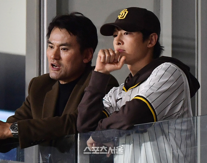 21일 서울 고척스카이돔에서 열린 ‘MLB 월드투어 서울 시리즈 2024’ LA 다저스와 샌디에이고 파드리스의 경기. 박찬호와 송중기가 함께 경기를 관람하고 있다. 2024. 3. 21. 고척 | 최승섭기자 thunder@sportsseoul.com