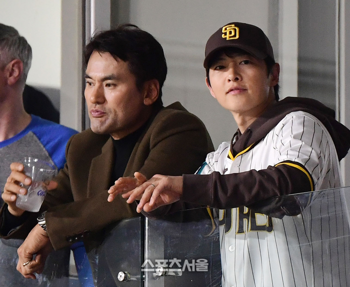 21일 서울 고척스카이돔에서 열린 ‘MLB 월드투어 서울 시리즈 2024’ LA 다저스와 샌디에이고 파드리스의 경기. 박찬호와 송중기가 함께 경기를 관람하고 있다. 2024. 3. 21. 고척 | 최승섭기자 thunder@sportsseoul.com