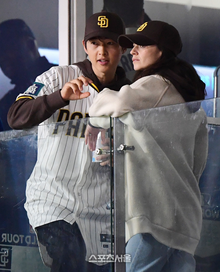 21일 서울 고척스카이돔에서 열린 ‘MLB 월드투어 서울 시리즈 2024’ LA 다저스와 샌디에이고 파드리스의 경기. 송중기가 아내와 함께 경기를 관람하고 있다. 2024. 3. 21. 고척 | 최승섭기자 thunder@sportsseoul.com