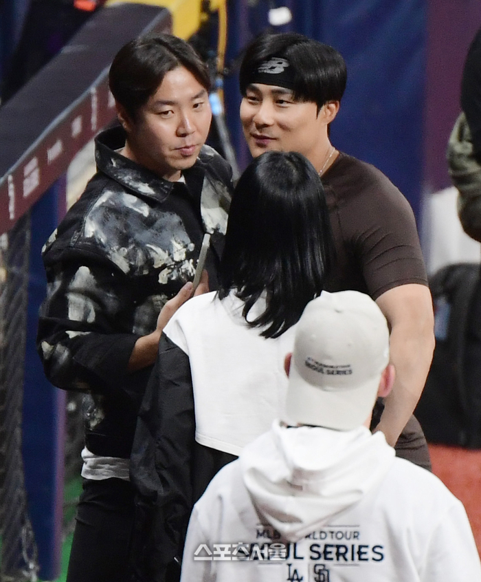 21일 서울 고척스카이돔에서 열린 ‘MLB 월드투어 서울 시리즈 2024’ LA 다저스와 샌디에이고 파드리스의 경기. 김하성이 경기 후 키움 김재현과 사진을 찍고 있다. 2024. 3. 21. 고척 | 최승섭기자 thunder@sportsseoul.com