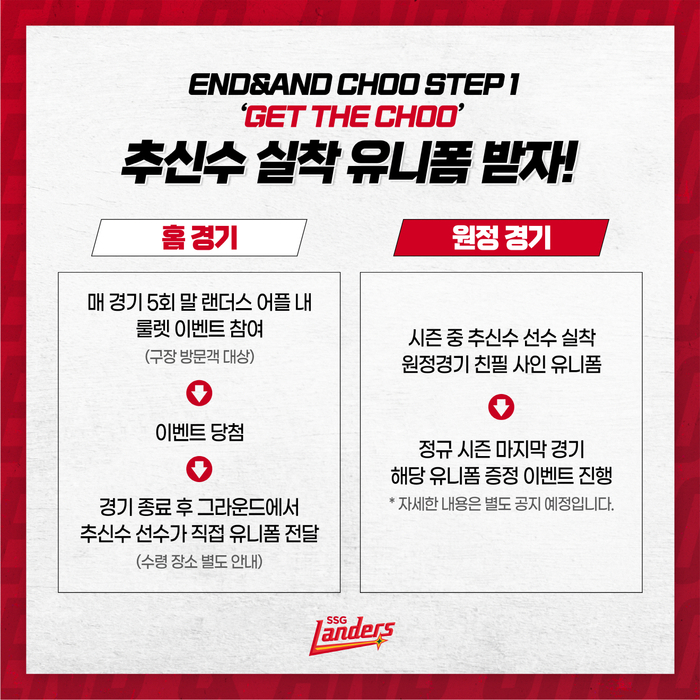 아울러 SSG는 2024시즌 종료 후 지역사회에 따뜻함을 전파하기 위해 추신수와 팬들이 함께 하는 봉사활동을 개최한다.