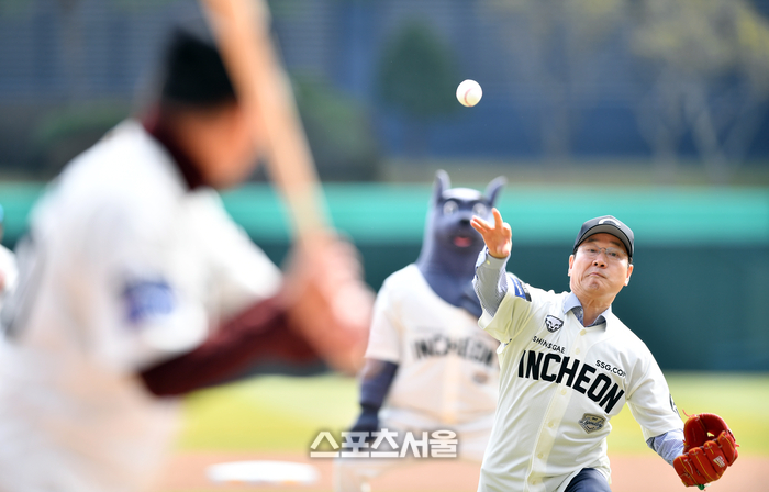 유정복 인천시장이 24일 인천SSG랜더스필드에서 열린 ‘2024 신한 SOL 뱅크 KBO리그’ SSG랜더스와 롯데자이언츠 시즌 2차전에서 시구를 하고 있다. 2024.03.24 문학 | 강영조기자 kanjo@sportsseoul.com