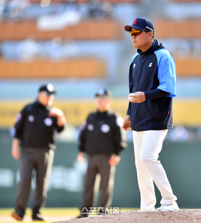 롯데 주형광 투수코치가 24일 인천SSG랜더스필드에서 열린 ‘2024 신한 SOL 뱅크 KBO리그’ SSG랜더스와 롯데자이언츠 시즌 2차전 8회말 우강훈을 마운드에 올리고 있다. 2024.03.24 문학 | 강영조기자 kanjo@sportsseoul.com