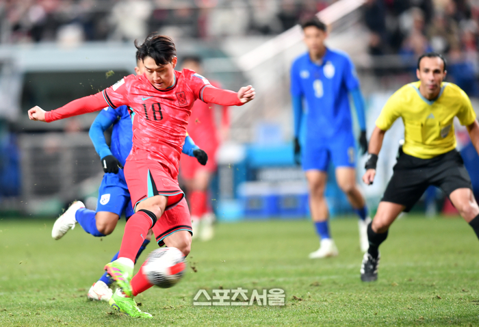 축구대표팀 공격수 이강인은 지난 21일 서울월드컵경기장에서 열린 태국과 2026 북중미월드컵 아시아 지역 2차 예선 조별리그 C조 3차전 홈 경기에서 후반 17분 교체 투입돼 활약했다.