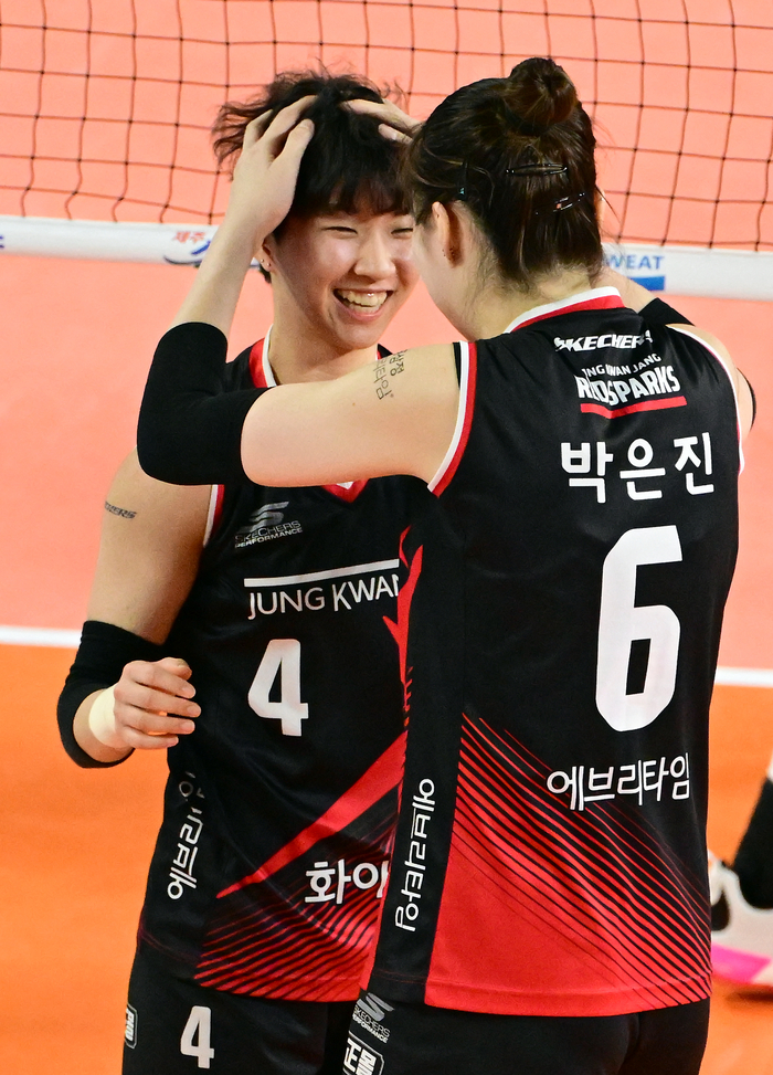 정관장 최대 무기인 메가와 지아가 각각 25득점, 30득점으로 총 55득점을 합작했고, 히든 카드 김세인도 서브에이스 하나를 포함해 9득점을 분담하며 신 스틸러 역할을 해냈다.