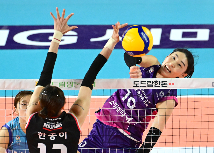 초반 주도권을 내준 흥국생명도 쉽게 물러서지 않았다. 빠르게 페이스를 회복해 김연경을 앞세워 연속 득점에 성공했고, 정관장은 7-8 역전을 허용했다. 이후엔 시소 게임이 이어졌다. 양 팀 모두 물러서지 않고 치열하게 대치하며 1점 차 승부를 세트 중반까지 했다.