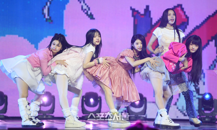 아일릿이 25일 서울 용산구 블루스퀘어에서 열린 데뷔 미니 1집 ‘슈퍼 리얼 미’ 미디어 쇼케이스에서 타이틀곡 마그네틱을 부르고 있다. 2024. 3. 25. 최승섭기자 thunder@sportsseoul.com