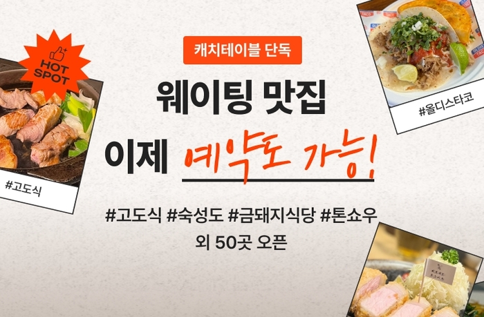 외식업 통합 솔루션 와드가 운영 중인 캐치테이블이 ‘웨이팅 맛집 예약 프로모션’을 진행한다고 26일 밝혔다. 맛집 이용객에게는 사전 예약을 통한 편리한 경험을, 가맹점들에게는 예약 서비스를 직접 체험해볼 기회를 제공하기 위해서다.