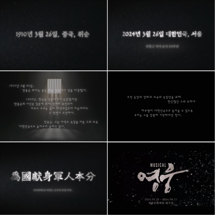 [스포츠서울 | 김효원 기자] 창작 뮤지컬 ‘영웅’(제작 에이콤)이 안중근 의사 서거 114 주년을 기리는 특별 영상을 제작해 공개했다.