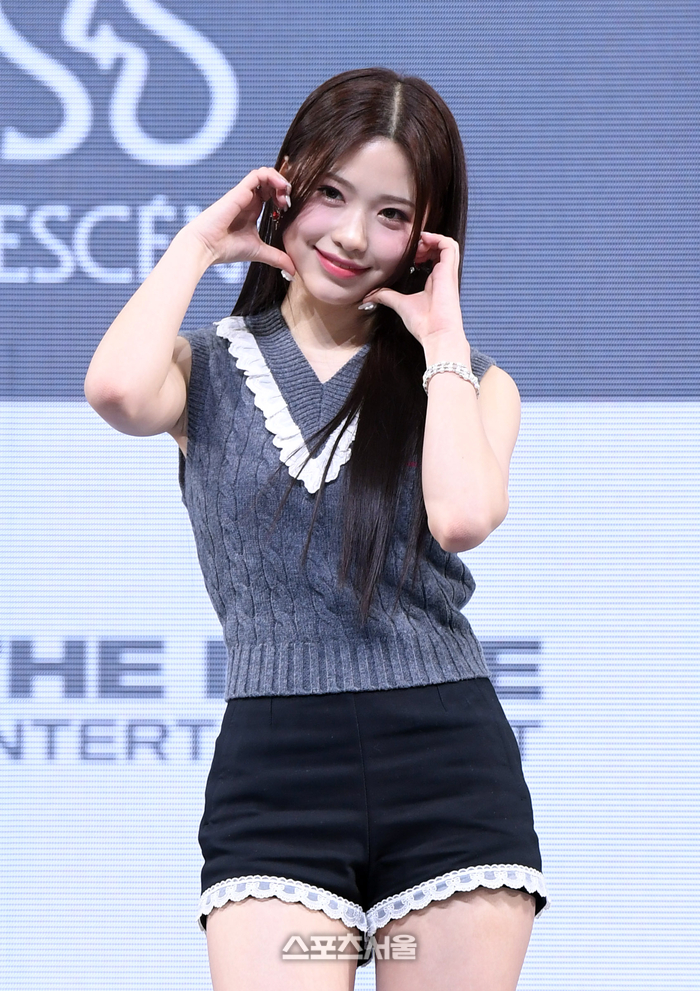 리센느(RESCENE)의 제나가 26일 서울 광진구 예스24 라이브홀에서 진행된 데뷔 싱글 앨범 ‘리 씬(Re:Scene)’ 발매 기념 미디어 쇼케이스에서 취재진을 향해 포즈를 취하고 있다. 원이, 미나미, 리브, 메이, 제나로 구성된 5인조 걸그룹 리센느는 ‘장면(Scene)’과 향(Scent)‘의 의미를 결합해 향을 통해 ’다시 장면을 떠올린다‘는 컨셉트를 담고 있다. 2024. 3. 26. 박진업 기자 upandup@sportsseoul.com