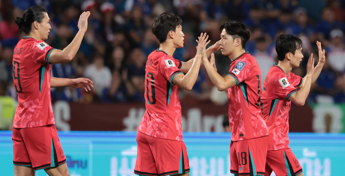 한국은 지난 21일 서울에서 열린 경기와 세 자리가 다른 라인업으로 나왔다. 최전방에 주민규 대신 조규성이 섰고, 이강인이 정우영 대신 선발 출전했다. 오른쪽 사이드백으로는 김문환이 출전했다.