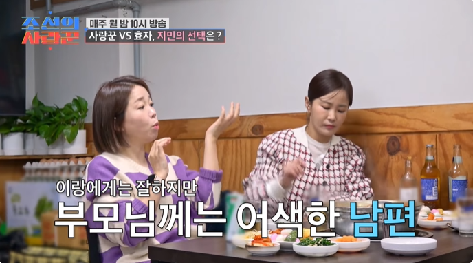 정이랑은 “나도 마음속으로 그 생각을 한 게 내 남편은 나한테 너무 잘한다. 근데 바로 옆 동 사는 부모님하고는 아직도 서먹서먹하다”고 말했다.