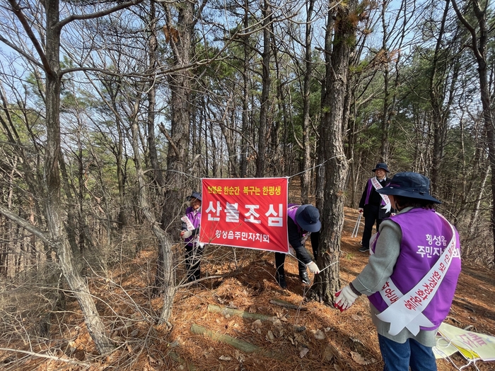 이날 횡성읍주민자치회 위원들은 산수골 등산객들에게 산불 예방을 위해 소각이나 취사, 흡연 등 위험 행동을 하지 말 것을 당부했다.