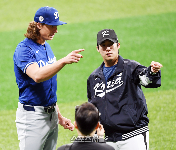 16일 유소년 대상 야구 클리닉이 열렸다. 원태인도 참석했다. 이 자리에 다저스 선수들도 있었다. 원태인은 글래스나우를 봤고, 적극적으로 다가갔다.