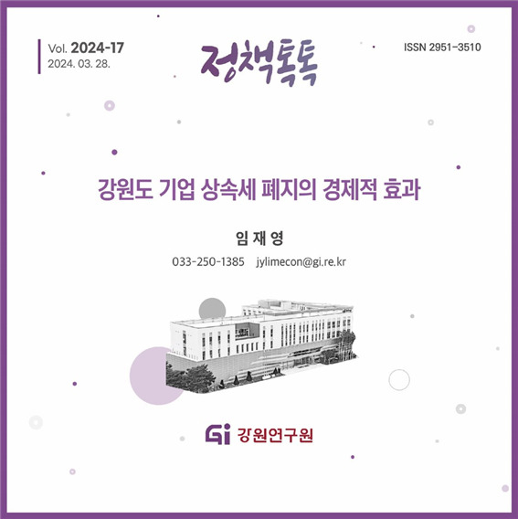 [스포츠서울ㅣ춘천=김기원기자] 강원연구원(원장 현진권)은 ‘강원도 기업 상속세 폐지의 경제적 효과’라는 제목으로 2024년 제17호 정책톡톡을 발간하였다.