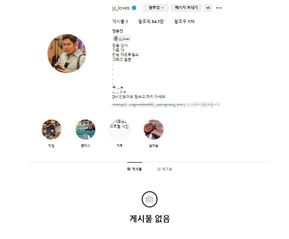 [스포츠서울 | 김효원 기자] 정용진 신세계그룹 회장의 인스타그램 게시글이 모두 삭제됐다.