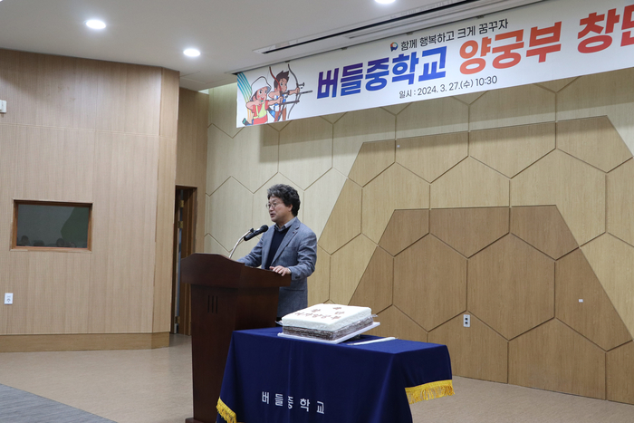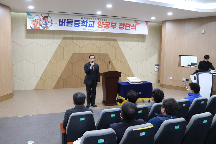 [스포츠서울ㅣ원주=김기원기자] 원주 버들중학교(교장 최용수)는 지난 3월 27일(수) 교내 시청각실에서 ‘여자 양궁부 창단식’을 개최했다.
