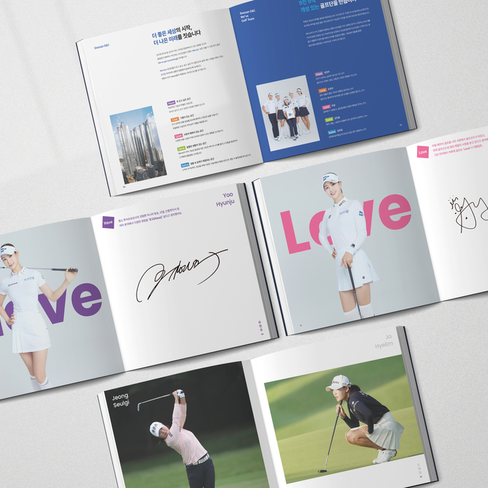 가장 눈길을 끄는 이벤트는 KLPGA투어에서는 크게 활성화하지 않은 ‘굿즈’를 선물하는 점이다. 화려한 라인업을 자랑하는 두산건설 골프단 소속 선수의 화보를 핸드북 형태로 제작했다.