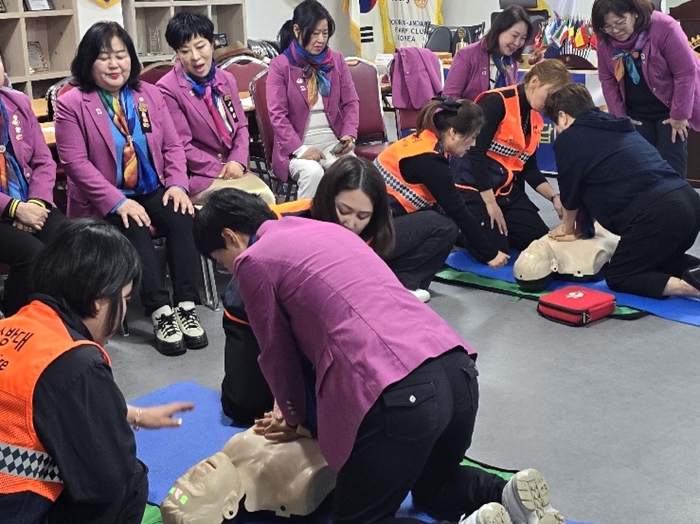 [스포츠서울ㅣ김기원기자] 홍천소방서 홍천여성의용소방대(대장 박홍숙)는 홍천읍내 사회봉사단체를 찾아가는 맞춤형 심폐소생술 교육 및 소방안전 홍보를 펼치고 있다.