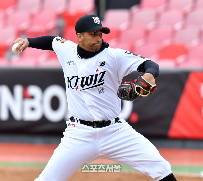 [스포츠서울 | 대전=김동영 기자] ‘독수리 킬러’라 했다. 시즌 두 번째 등판에서 한화를 다시 만났다. 1회 흔들렸다. 딱 거기까지였다. 끝나고 보니 역시나 호투다. KT ‘에이스’ 윌리엄 쿠에바스(34)가 또 날았다.
