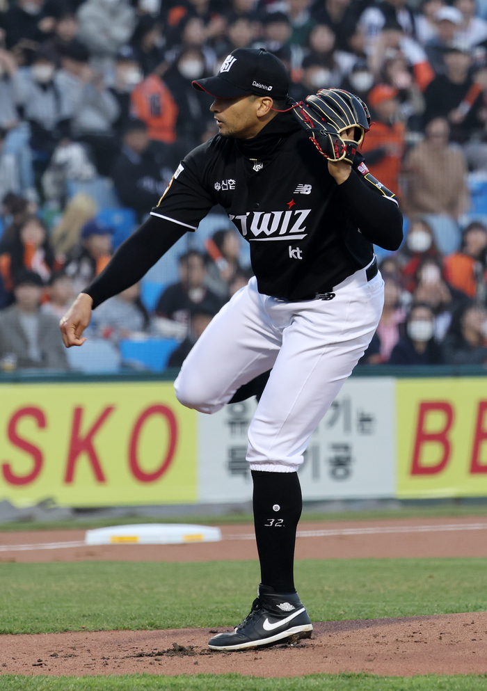 1회말 문현빈에게 좌측 안타, 조나단 페라자에게 우중간 안타를 줬다. 채은성에게 3루 땅볼을 유도했는데, 3루수 황재균의 1루 송구 실책이 나왔다. 3루 주자가 홈에 들어와 0-1이 됐다. 계속된 2사 1,2루에서 안치홍에게 중전 적시타를 맞아 0-2가 됐다.