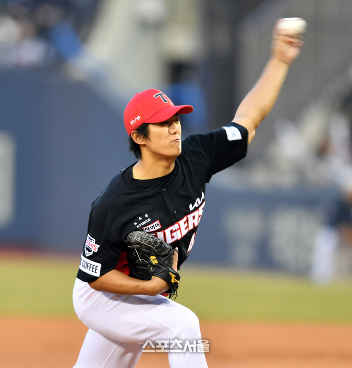 이날 총 78구를 던진 이의리는 최고 시속 154㎞, 평균 시속 149㎞ 속구(39구)를 중심으로 슬라이더(18구), 커브(17구), 체인지업(4구를) 섞어 던졌다.