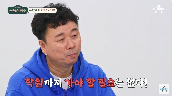 강원래는 “학교가 있는데 학원까지 가야 할 필요가 있냐는 거다”고 말했다. 이에 김송은 “지금은 남편이 말 거는 것도 싫다”고 단호히 말했다.