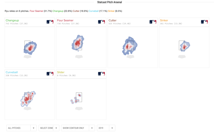 하이 패스트볼 구사에 있어 정점인 투수가 한 명 더 있다. 한국 역대 최고 투수 한화 류현진이다. 류현진 또한 2019년을 기점으로 하이 패스트볼 비중을 높였다. 체인지업과 커브를 극대화하기 위해 강속구 투수가 아님에도 과감히 스트라이크존 상단에 포심을 던졌다. 지난달 29일 대전 KT전에서 특유의 다채로운 볼배합을 펼쳤는데 아직 모든 것을 보여준 게 아니다. 지난 2경기에서는 하이 패스트볼 비중이 적었다. 스트라이크존 상단도 이용하면 그야말로 난공불락이 될 수 있다.