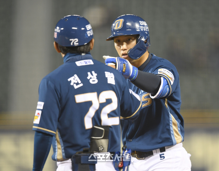 그런데 2사후 NC가 집중력을 보였다. 손아섭이 2루 도루에 성공했고 박건우가 볼넷을 골라 최원태가 내려갔다. 2사 1, 2루에서 서호철이 김진성의 포크볼에 좌전 적시타. 김진성은 김진성의 반대 투구 속구에 적시 2루타를 날렸다. 김형준이 볼넷을 고르며 찬스를 이어갔고 김주원도 이우찬과 7구 승부 끝에 밀어내기 볼넷으로 역전에 성공했다.