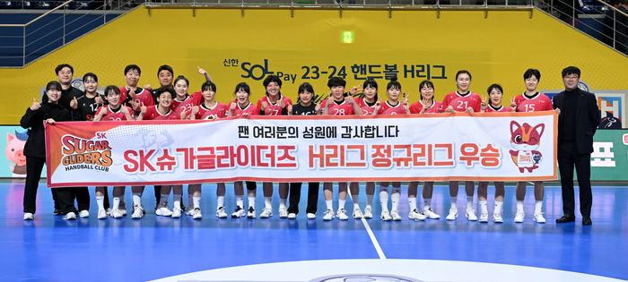 SK는 지난 3일 광주 빛고을체육관에서 열린 신한 SOL페이 23-24 핸드볼 H리그 여자부 3라운드에서 광주를 26-17로 이기고 정규리그 우승을 확정지었다.