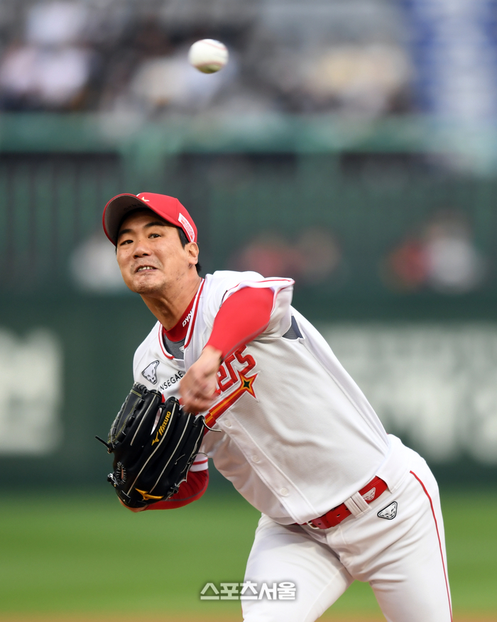 SSG 좌완선발 김광현이 4일 인천SSG랜더스필드에서 열리는 2024프로야구 SSG랜더스와 두산베어스의 시즌 3차전에서 역투하고 있다. 김광현은 3회초 정수빈의 타구를 보고 뛰어가다 허리쪽 불편을 감지하고 자진강판했다. 2024.04,04. 문학 | 강영조기자 kanjo@sportsseoul.com