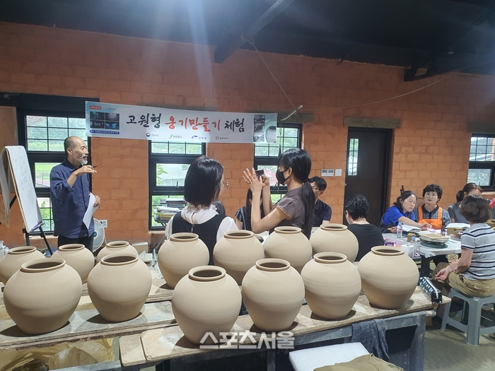 ‘햇살무늬 토기, 일·알·앎·삶’은 전북특별자치도 무형문화재인 진안고원형옹기장과 함께하며 진안고원 특유의 옹기를 이해하고 전통문화를 일상으로 녹여낸다.