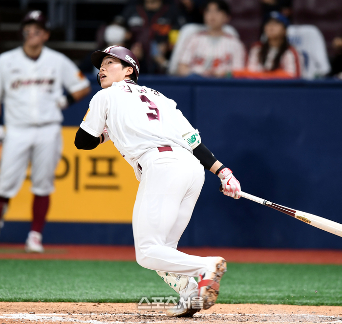 키움 김혜성이 5일 고척 스카이돔에서 열린 2024 KBO리그 한화와 경기 4회말 1사 타구를 바라보고 있다. 좌익수 플라이 아웃. 2024. 4. 5. 고척 | 최승섭기자 thunder@sportsseoul.com