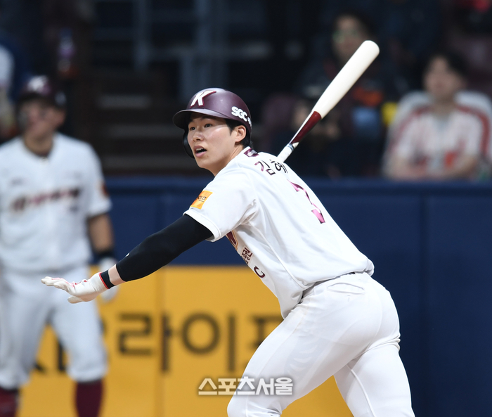 키움 김혜성이 5일 고척 스카이돔에서 열린 2024 KBO리그 한화와 경기 5회말 1사1,3루 김혜성이 1타점 좌전안타를 치고 있다. 2024. 4. 5. 고척 | 최승섭기자 thunder@sportsseoul.com