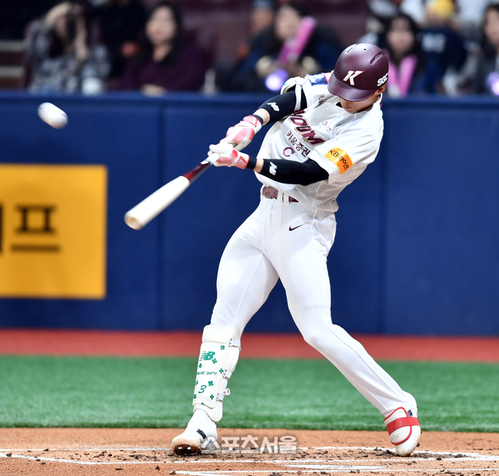 키움 3번타자 김혜성이 7일 고척스카이돔에서 열린 2024프로야구 키움히어로즈와 한화이글스의 경기 1회말 2사 후 김민우를 상대로 동점 솔로홈런을 터트린 후 홈인하고 있다. . 2024.04.07. 고척 | 강영조기자 kanjo@sportsseoul.com