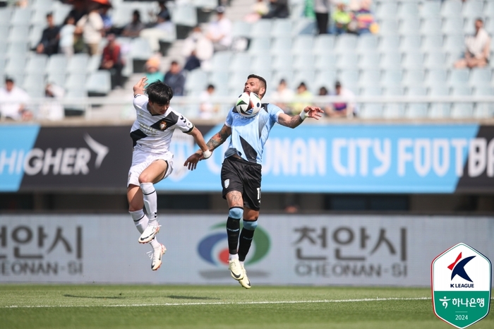 후반에도 경남이 리드를 잡았다. 후반 18분 오른쪽 측면에서 원기종의 컷백을 아라불리가 문전에서 발로 밀어넣었다. 천안도 곧장 추격했다. 주인공은 한재훈이다. 후반 29분 하프라인 근처서 넘어온 긴 크로스를 박스 안에서 한재훈이 머리로 받아 넣었다.