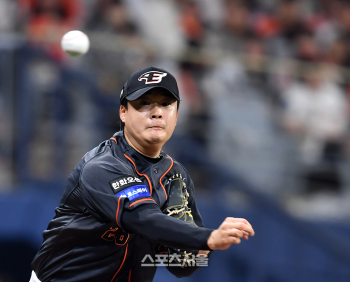 한화 우완투수 한승혁이 7일 고척스카이돔에서 열린 2024프로야구 키움히어로즈와 한화이글스의 경기 8회말 2사 1루에서 김혜성을 견제하고 있다.. 2024.04.07. 고척 | 강영조기자 kanjo@sportsseoul.com