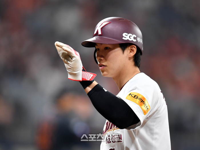 키움 3번타자 김혜성이 7일 고척스카이돔에서 열린 2024프로야구 키움히어로즈와 한화이글스의 경기 8회말 2사 후 안타로 출루하고 있다.. 2024.04.07. 고척 | 강영조기자 kanjo@sportsseoul.com
