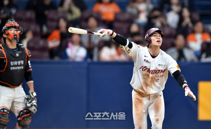 키움 3번타자 김혜성이 7일 고척스카이돔에서 열린 2024프로야구 키움히어로즈와 한화이글스의 경기 11회말 선두타자로 나와 한화 이태양을 상대로 끝내기 우월홈런을 터트린 후 동료들과 자축하고 있다. 2024.04.07. 고척 | 강영조기자 kanjo@sportsseoul.com