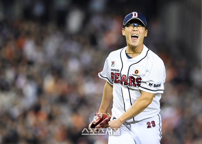 두산 베어스 이병헌이 9일 잠실구장에서 열린 2024 KBO리그 한화 이글스와 경기 6회초 1사 만루 상황에서 한화 페라자를 병살타로 잡아내고 위기를 넘기면서 크게 기뻐하고 있다. 2024. 4. 9. 잠실 | 박진업 기자 upandup@sportsseoul.com