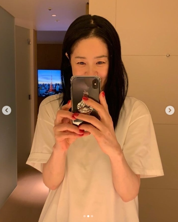 고현정의 초근접 셀카에 또렷한 비주얼과 도자기 피부가 더욱 빛났다. 일본 도착 후 편안한 모습은 동안 외모를 자랑했다.