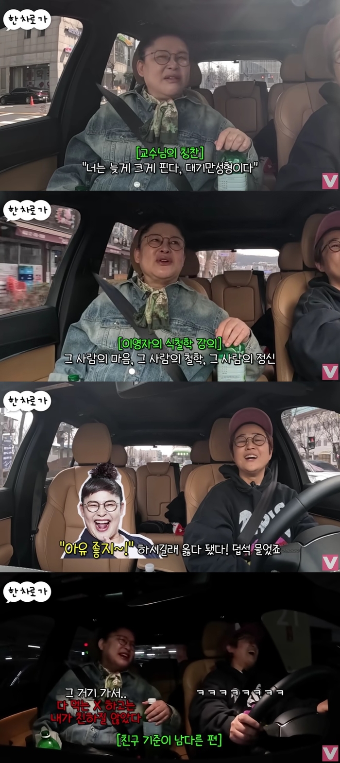 9일 유튜브채널 ‘비보티비’에 ‘이영자의 먹철학강의 들으며 한 차로 가’ 에피소드가 공개됐다.