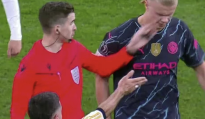 [스포츠서울 | 박준범 기자] 맨체스터 시티 공격수 엘링 홀란이 주심에게 일격(?)을 당했다.