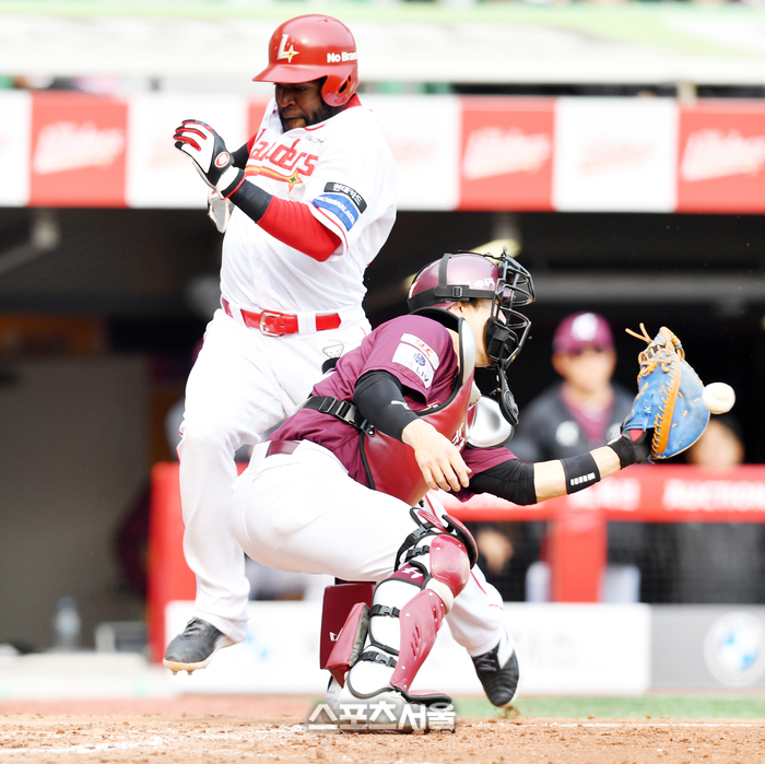 SSG 4번타자 에레디아가 10일 인천SSG랜더스플드에서 열린 2024프로야구 SSG랜더스와 키움히어로즈의 경기 7회말 2사 1,2루에서 이지영의 안타때 홈으로 대시해 세이프되고 있다. 2024.04.10. 문학 | 강영조기자 kanjo@sportsseoul.com